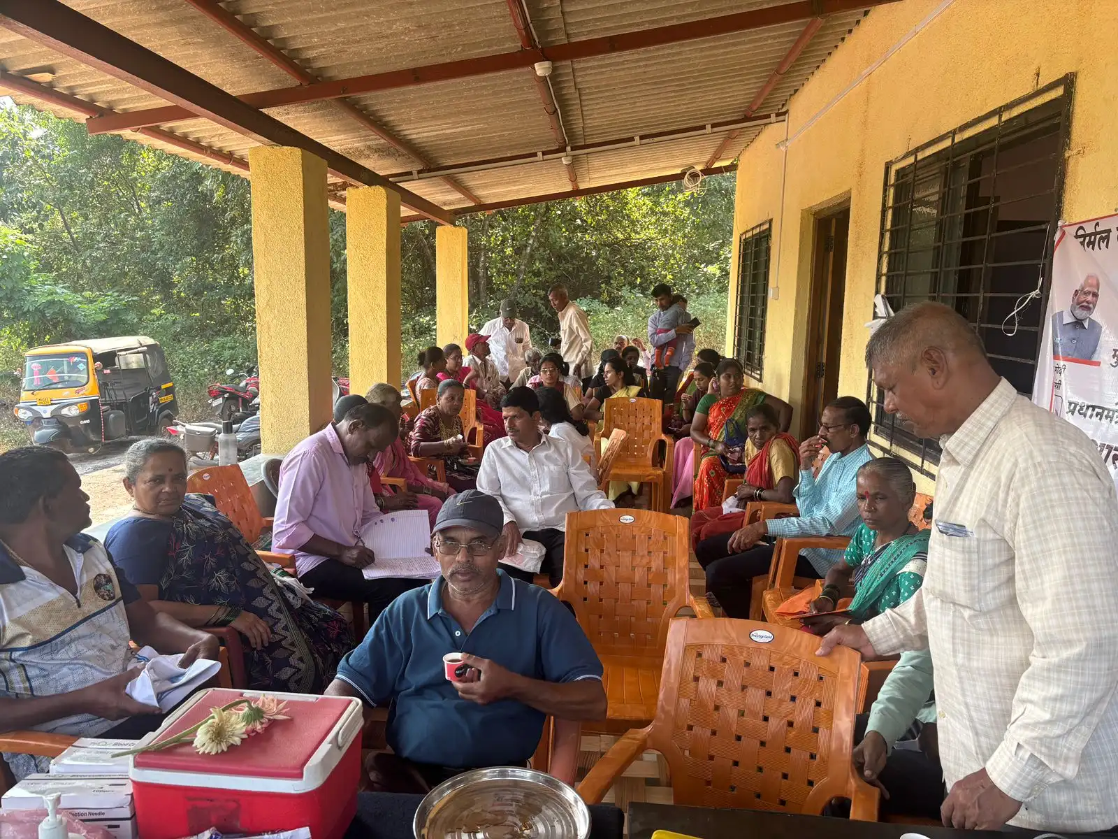 गावातील लोकांच्या आरोग्याची काळजी घेण्यासाठी आरोग्य तपासणी शिबिर आयोजित करण्यात आले. या शिबिरात डॉक्टर आणि नर्स यांच्या टीमने गावकऱ्यांची सर्वसाधारण आरोग्य तपासणी केली.
