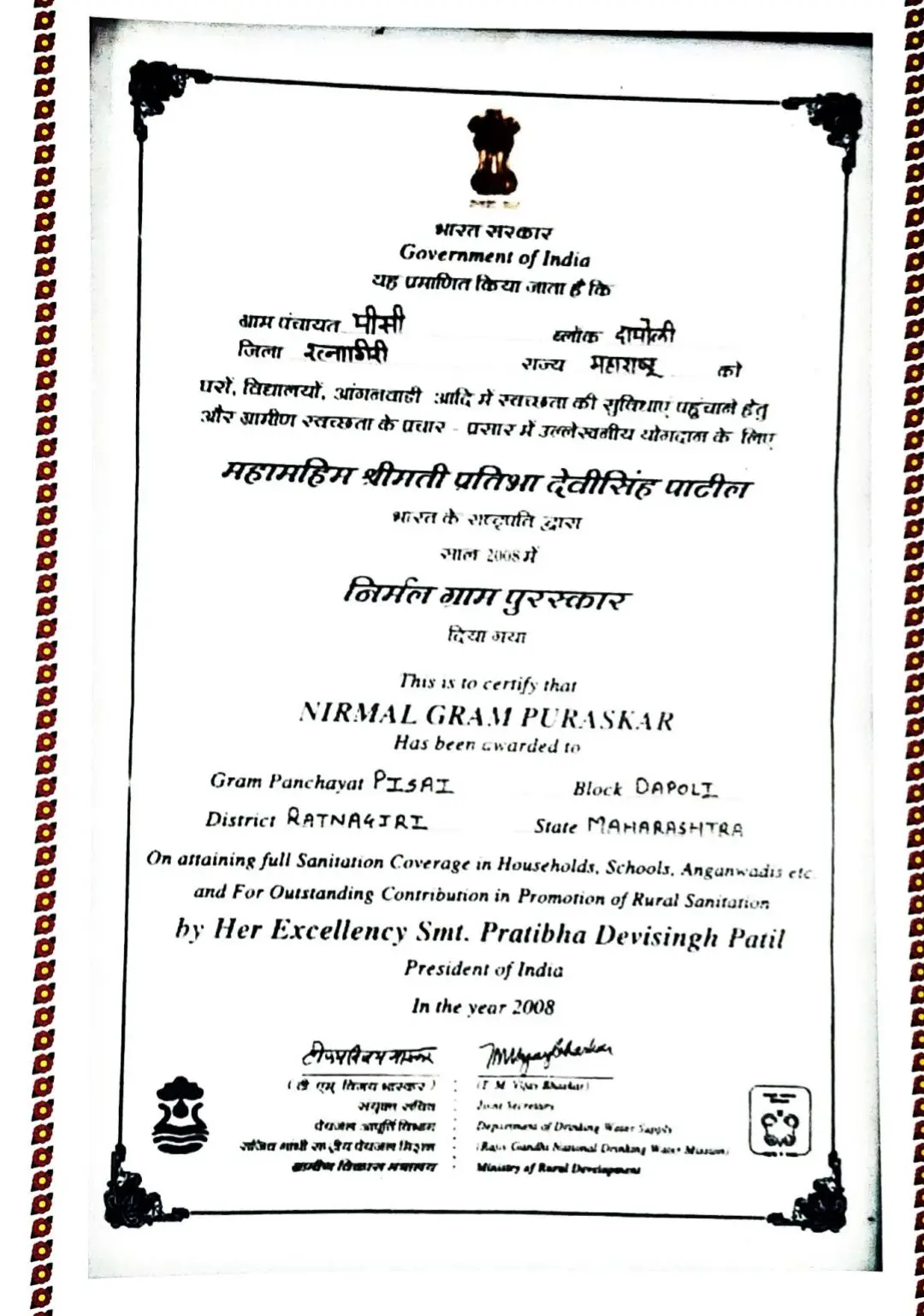 निर्मल व तंटामुक्त ग्राम पिसई -यशोगाथा